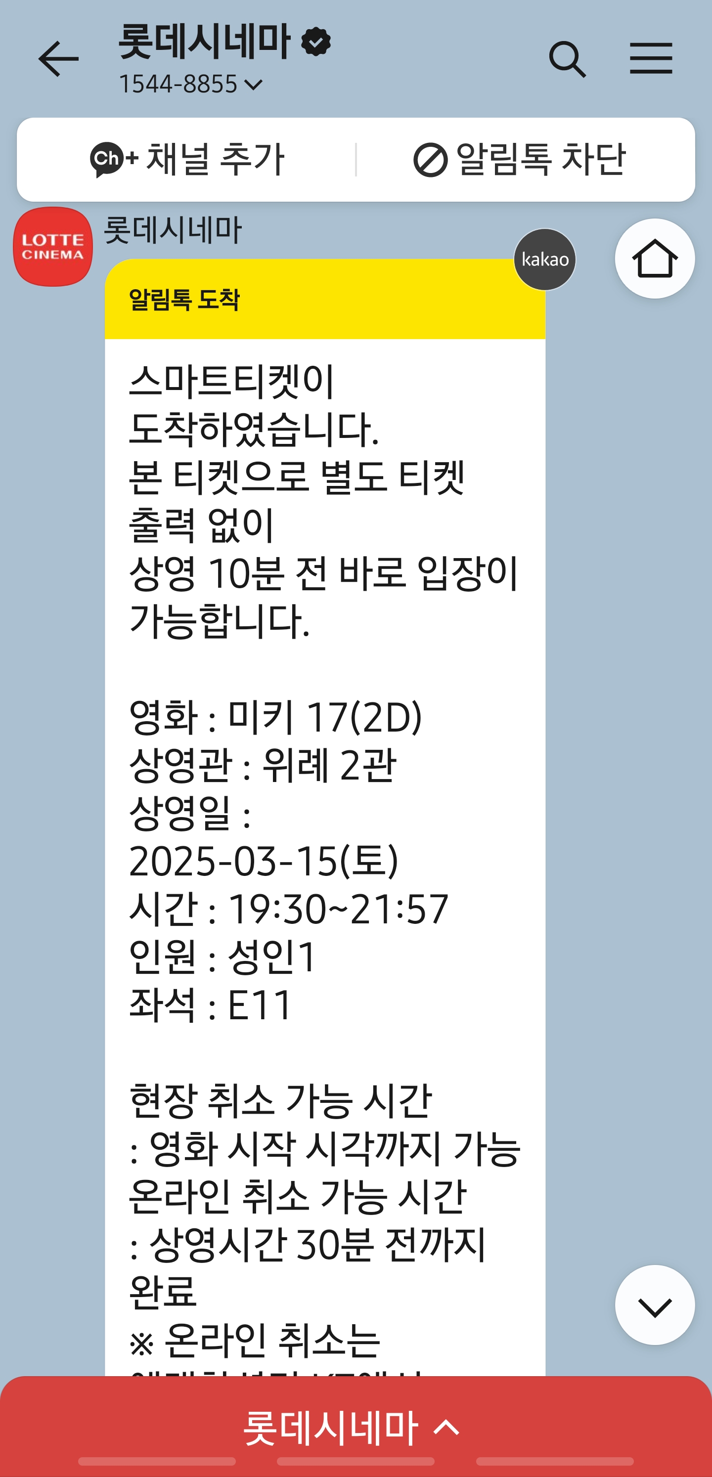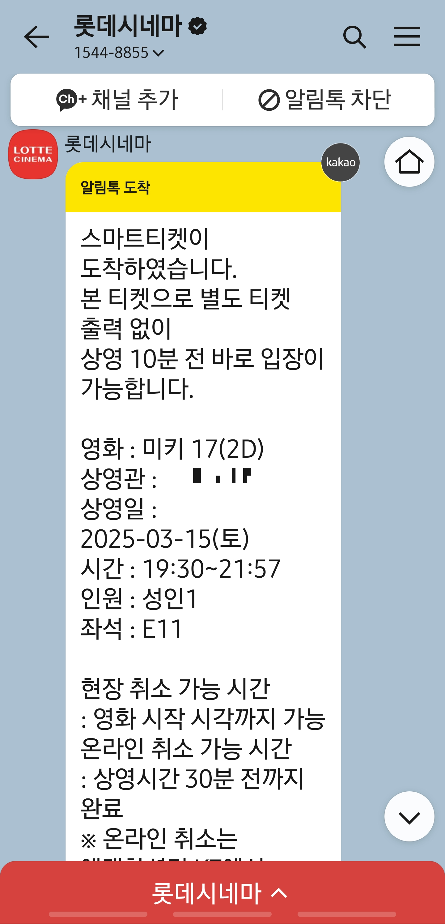 작은 영화관이라서 D~F열에 앉으면 스크린이 눈에 딱 꽉차는 위치라 제일 좋아라 한다.